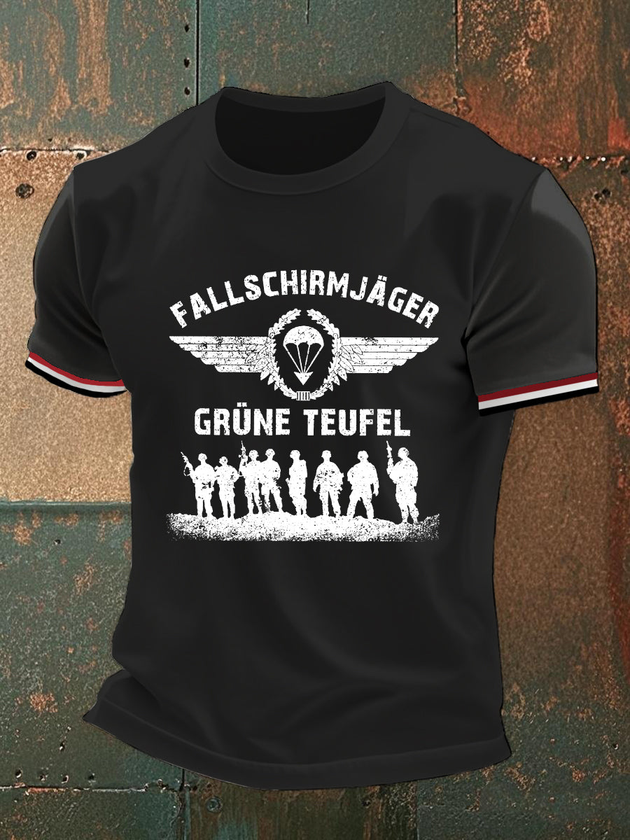 Männer Deutsche Fallschirm jäger Grüne Teufel Springerab zeichen Fallschirm springer Kurzarm T-Shirt