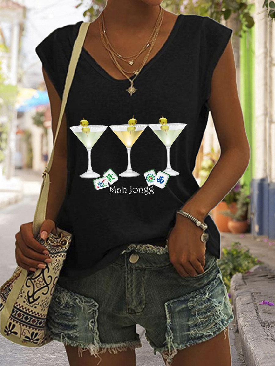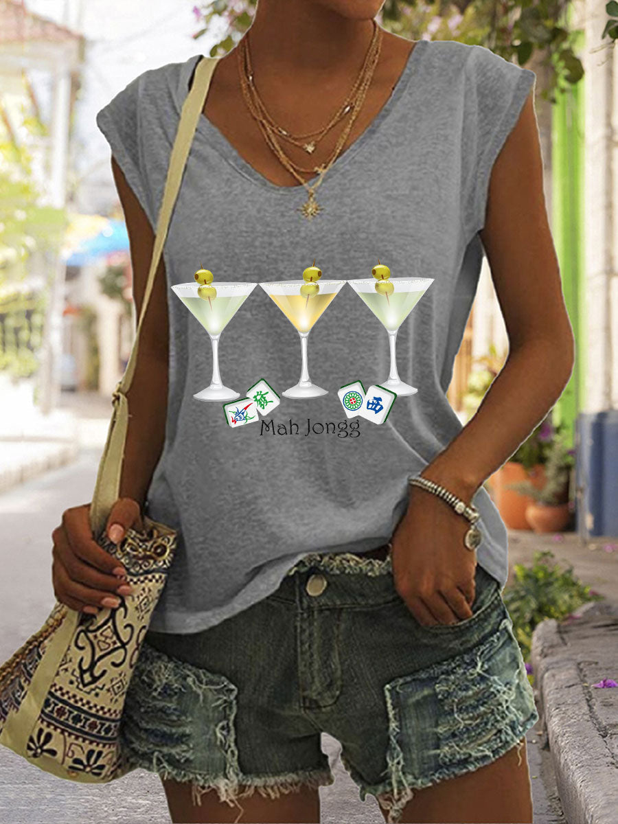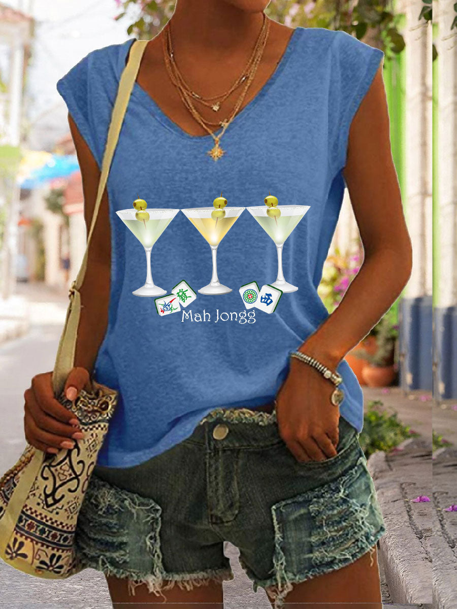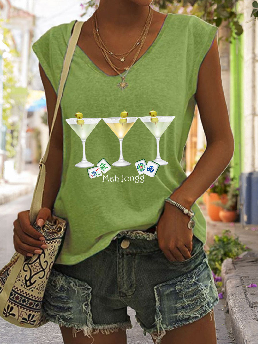 Damen Mahjong ärmelloses Top mit V-Ausschnitt