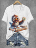Frauen Lustiges Tier Mahjong Print V-Ausschnitt T-Shirt