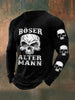 Männer Böser Alter Mann Schädel gedruckt Langarm T-Shirt