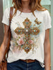Frauen Kreuz Kreuz Blumen druck T-Shirt