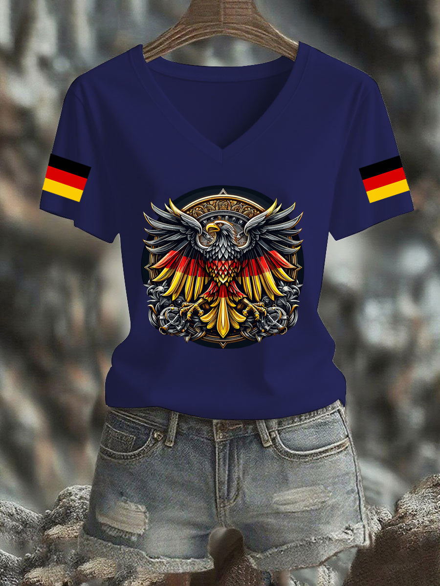 Damen Deutschland Bedrucktes T-Shirt mit V-Ausschnitt