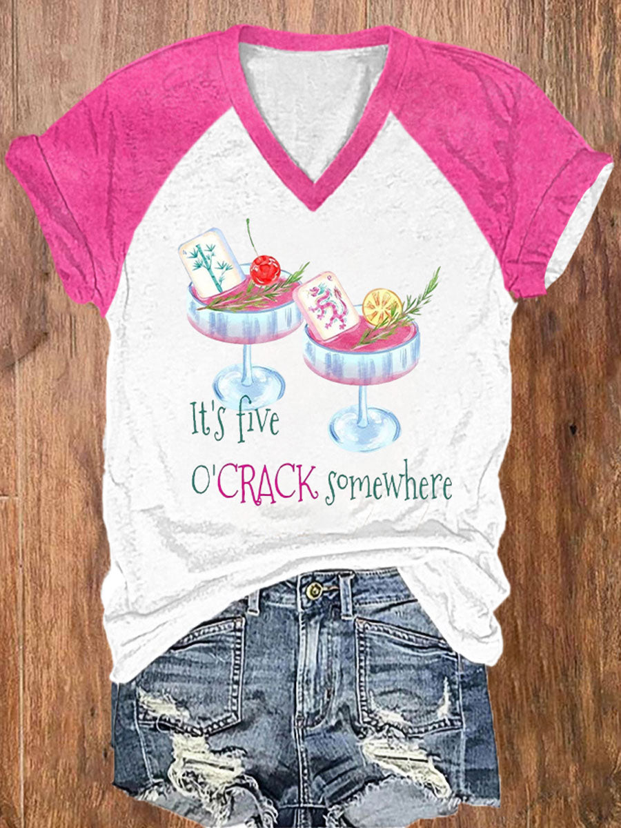 Damen Mahjong bedrucktes lässiges T-Shirt