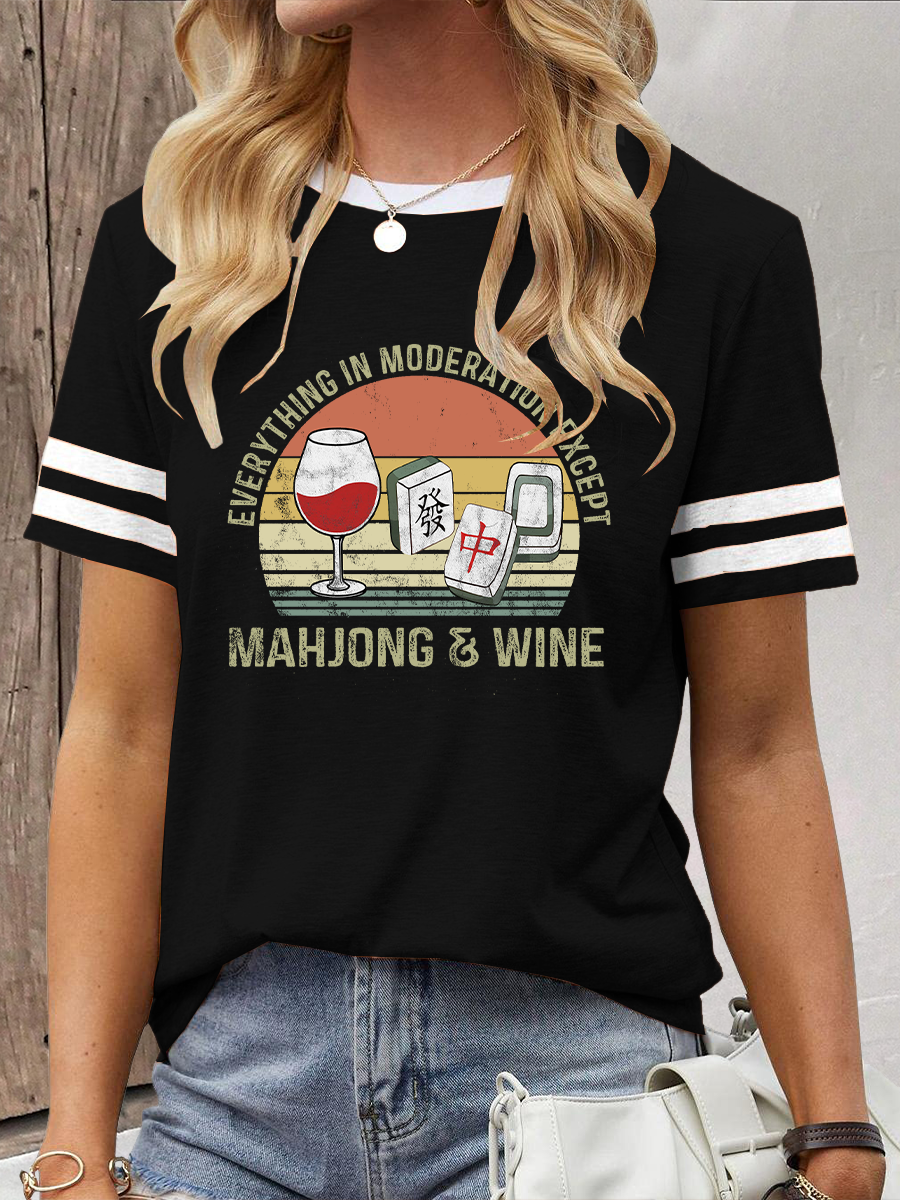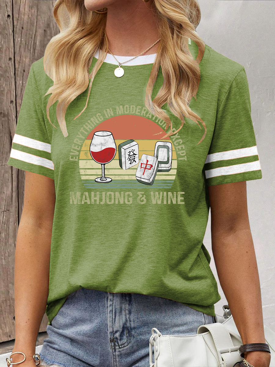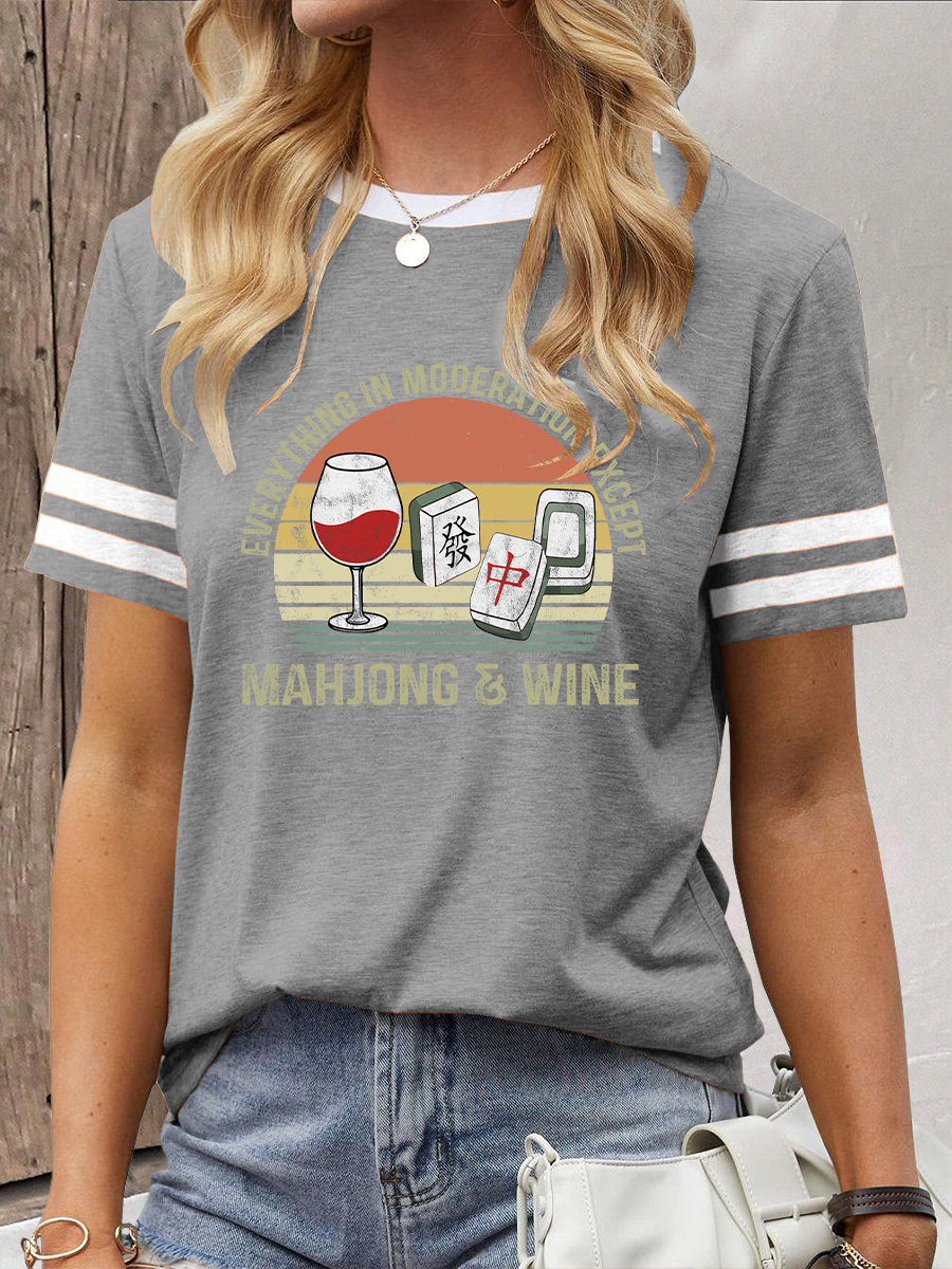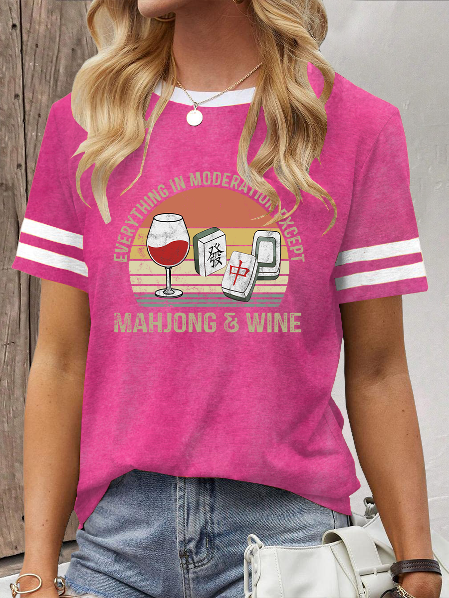 Damen-T-Shirt mit Mahjong-und Wein druck