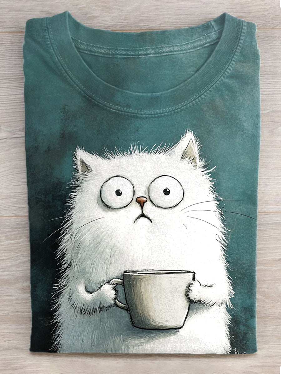 Damen-T-Shirt mit süßem Katzen druck Vintage Kurzarm