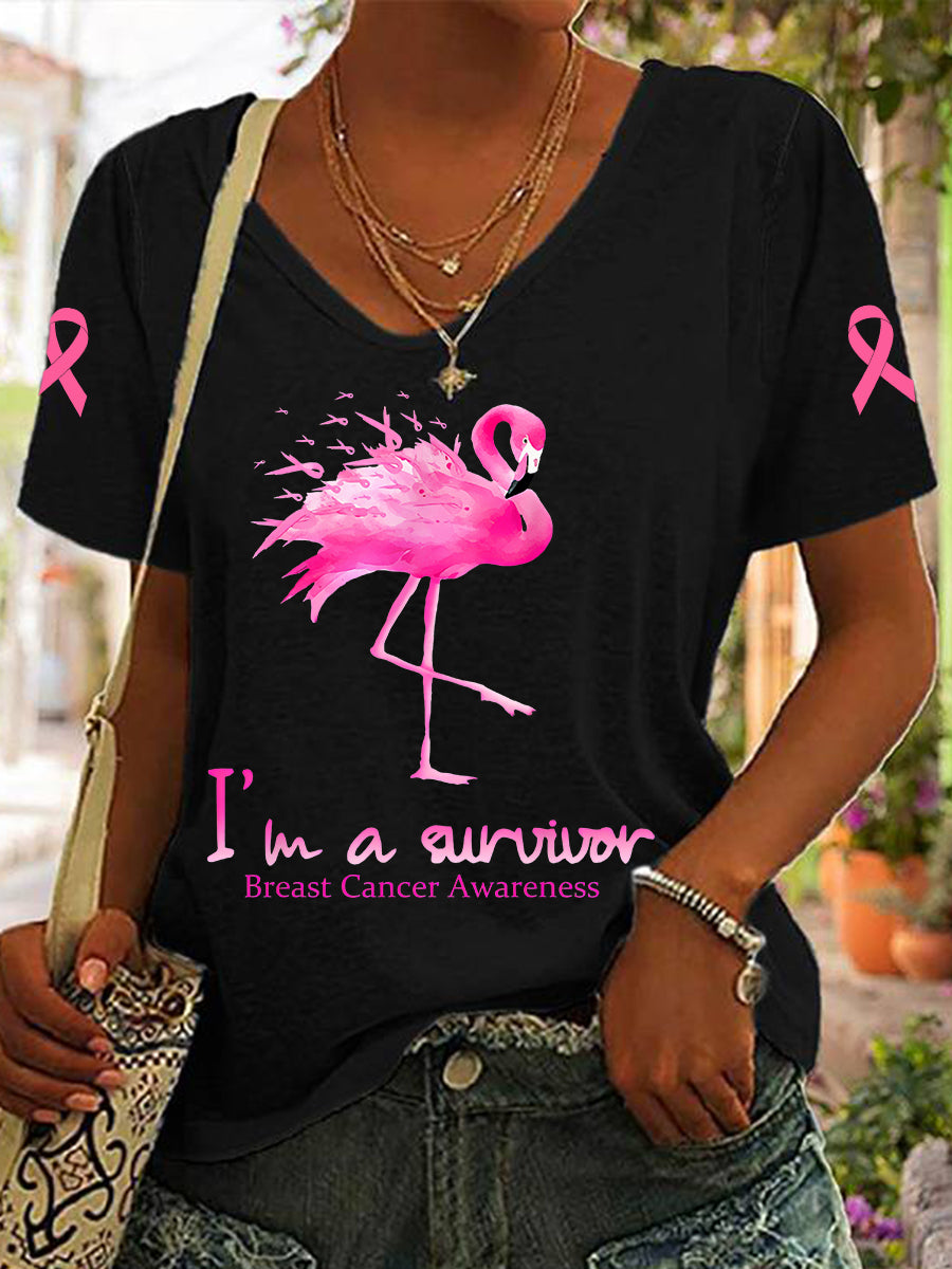 Frauen Brustkrebs Bewusstsein Ich bin ein Überlebender Flamingo T-Shirt