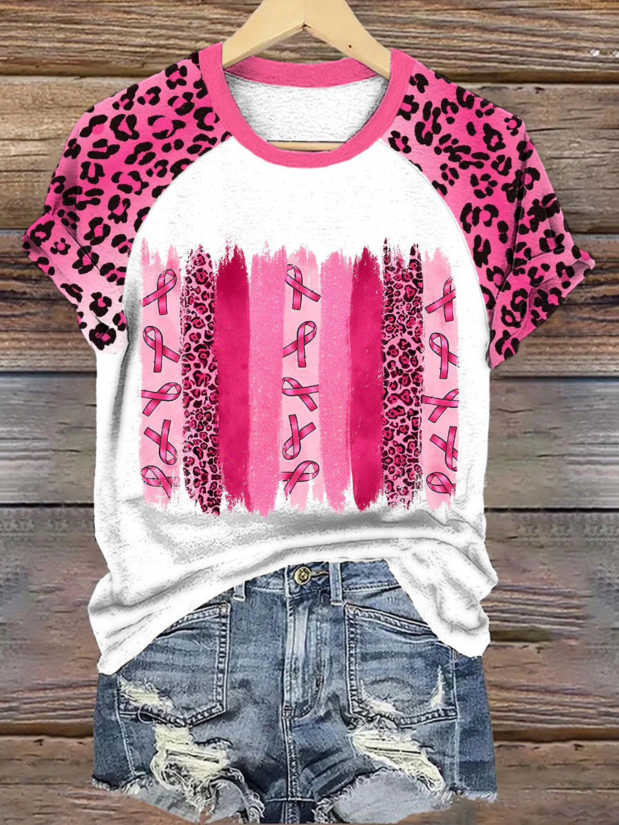 Frauen Brustkrebs Bewusstsein Rosa Band Leopard Print T-Shirt
