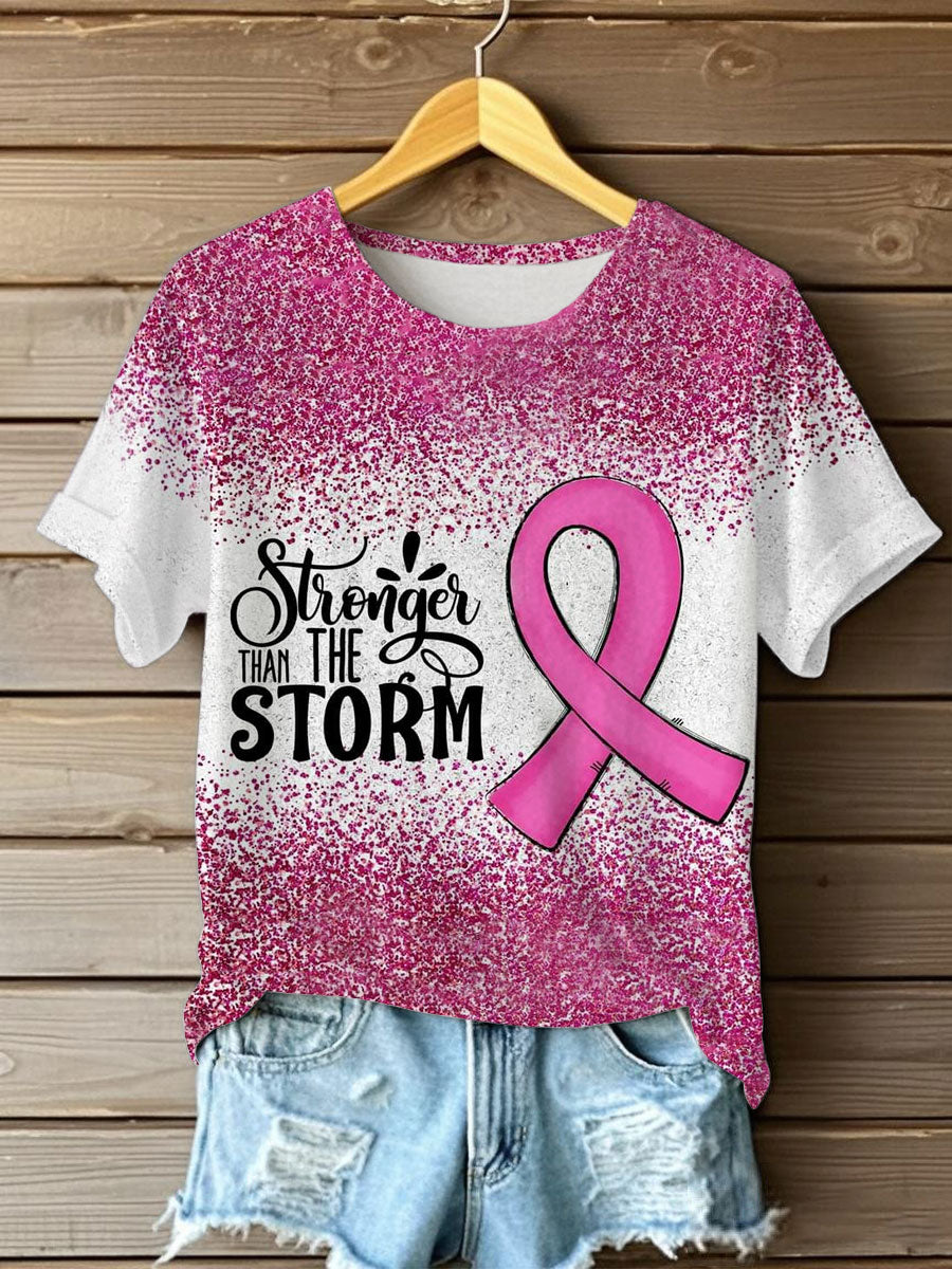 Frauen Brustkrebs Bewusstsein Rosa Band stärker als der Sturm Print Kurzarm T-Shirt
