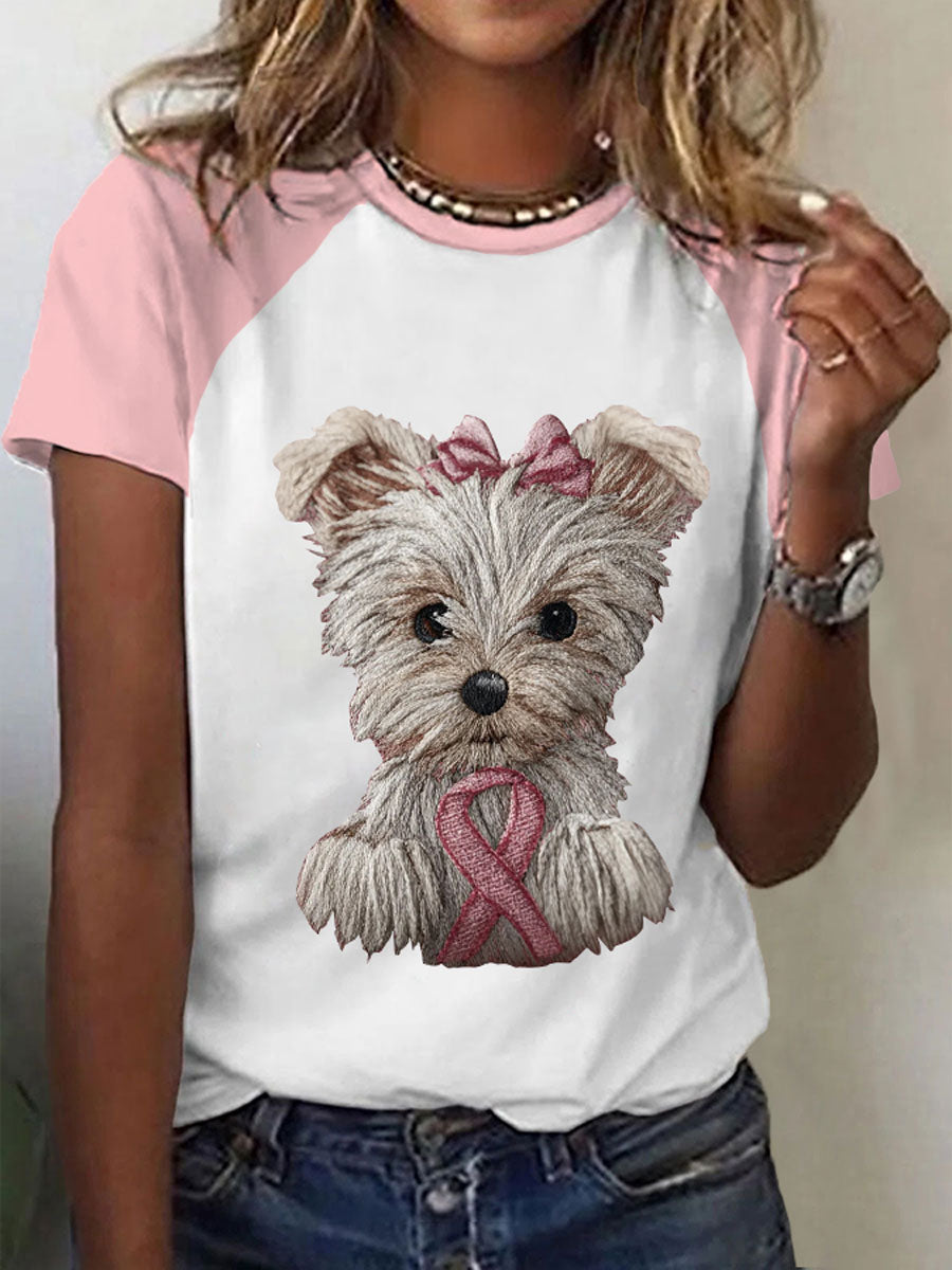 Frauen Brustkrebs rosa Band Hund Print lässig T-Shirt