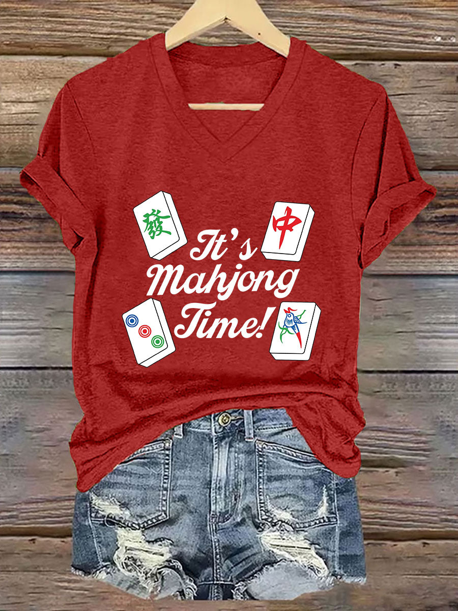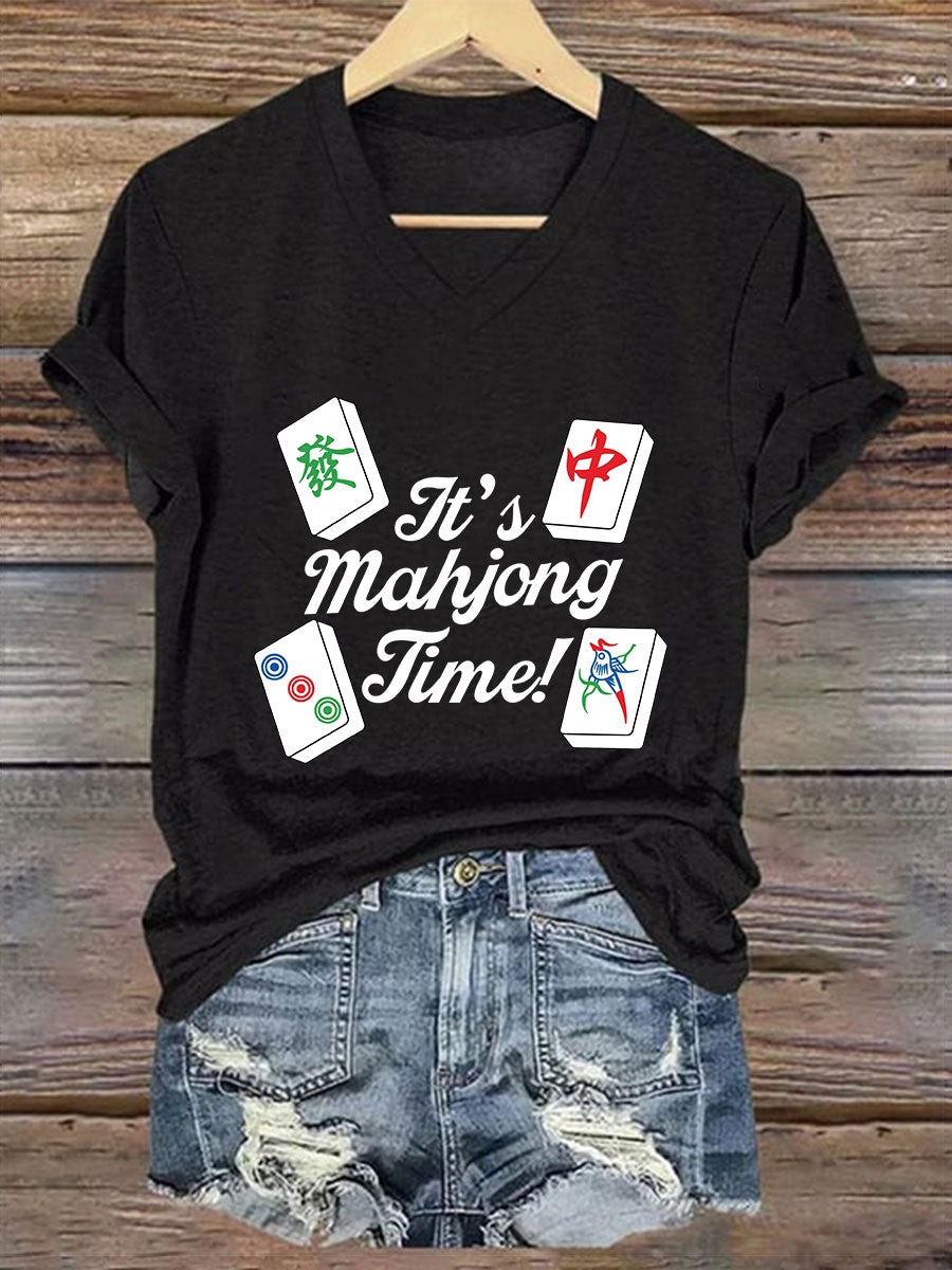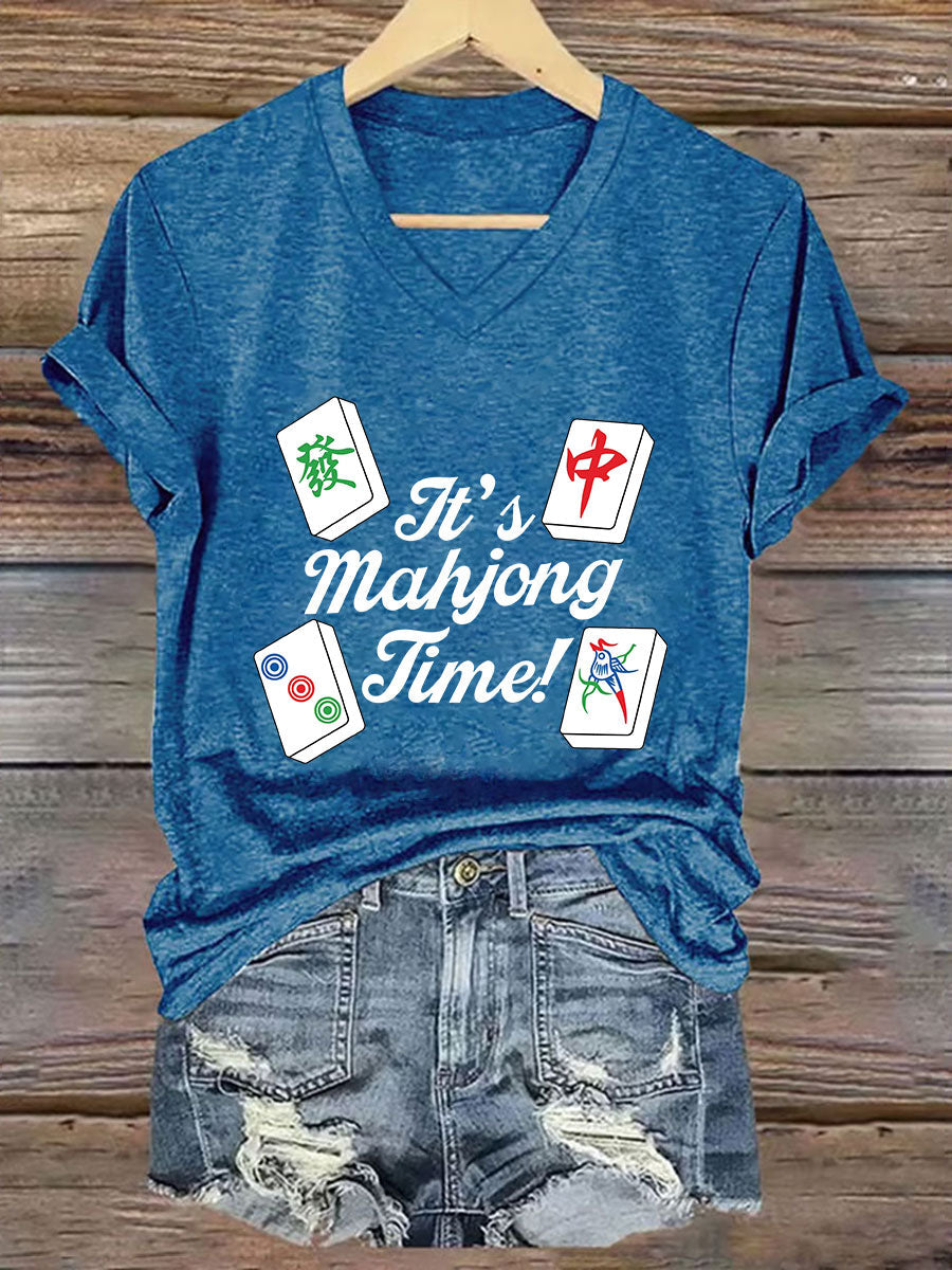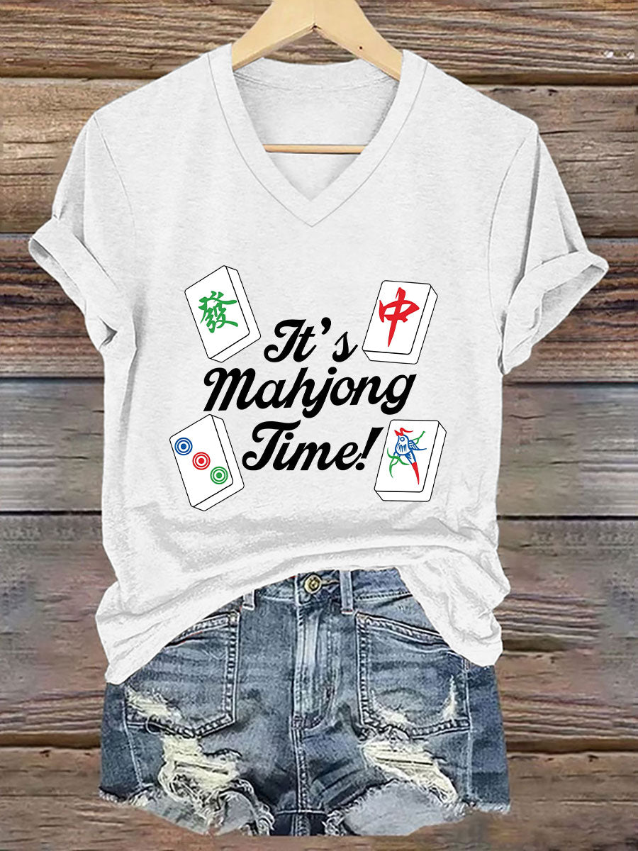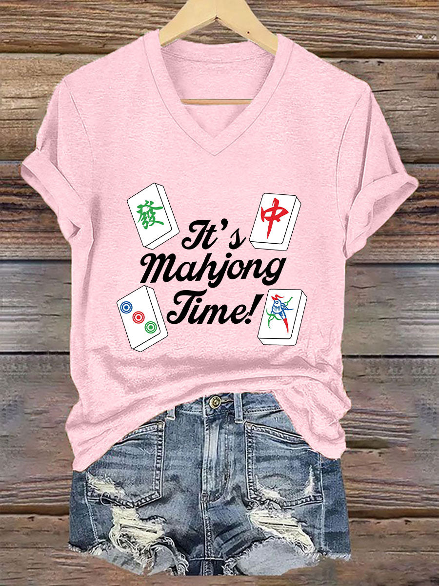 Frauen Es ist Mahjong-Zeit T-Shirt mit V-Ausschnitt