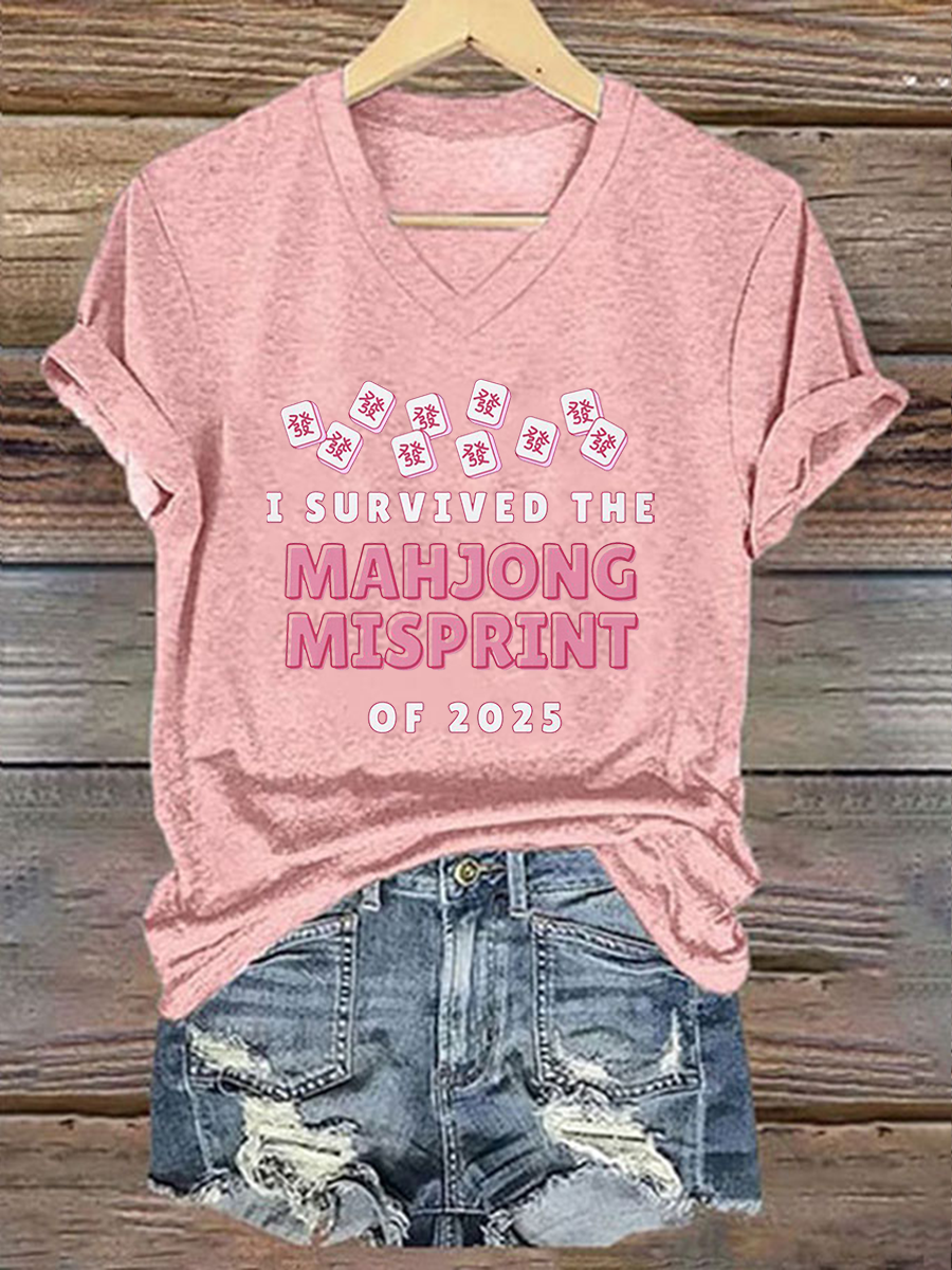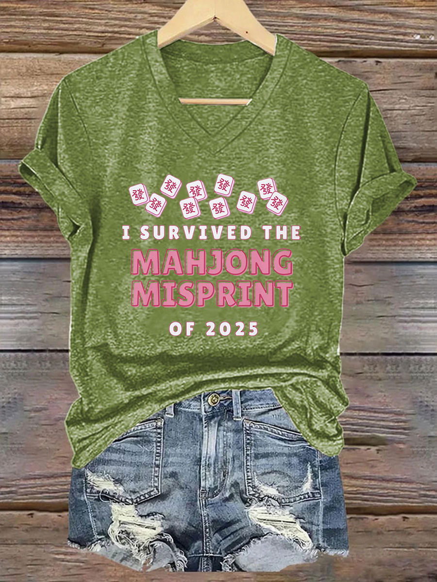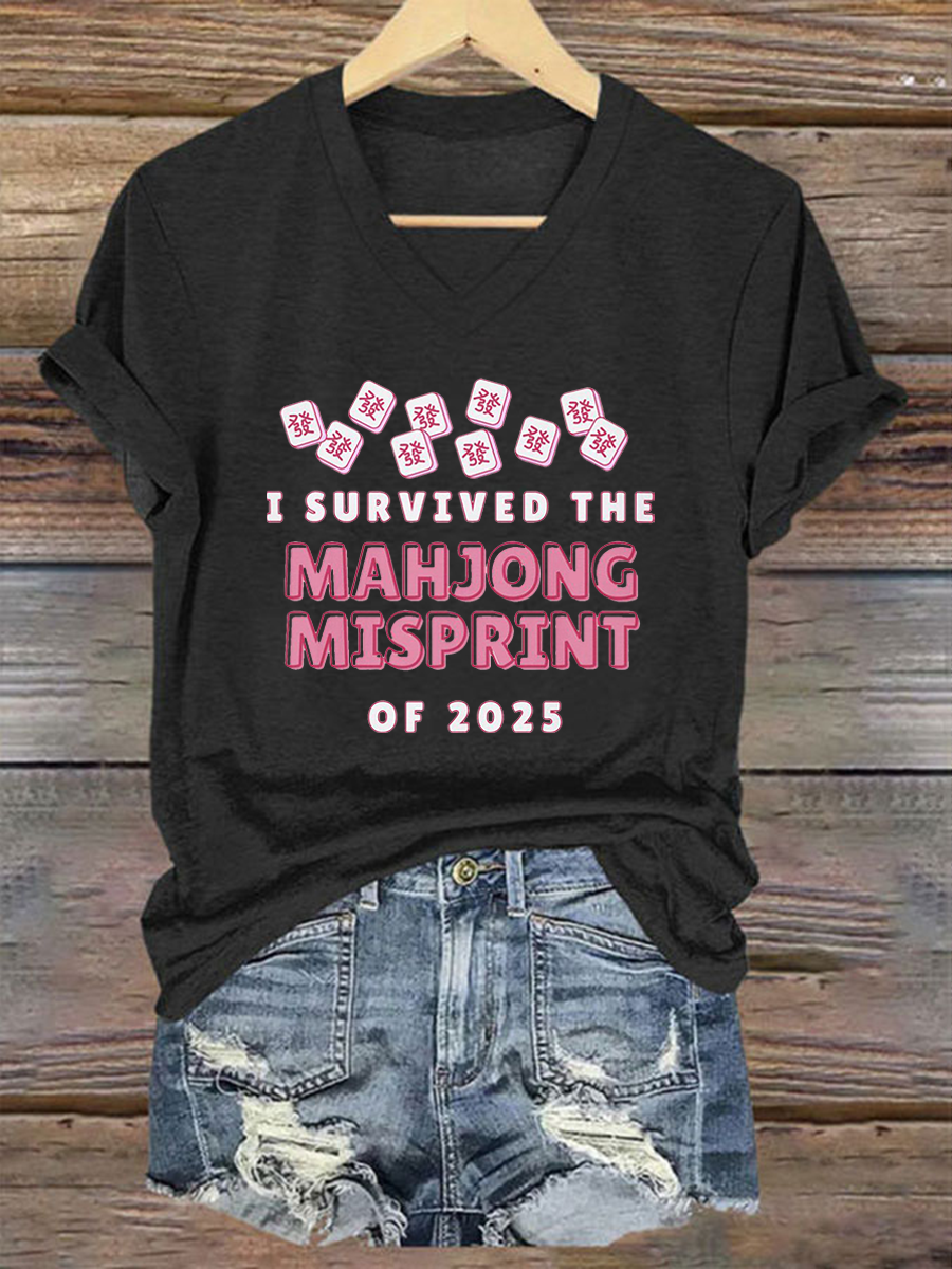 Frauen Ich habe den Mahjong-Fehl abdruck von 2025 Print T-Shirt überlebt