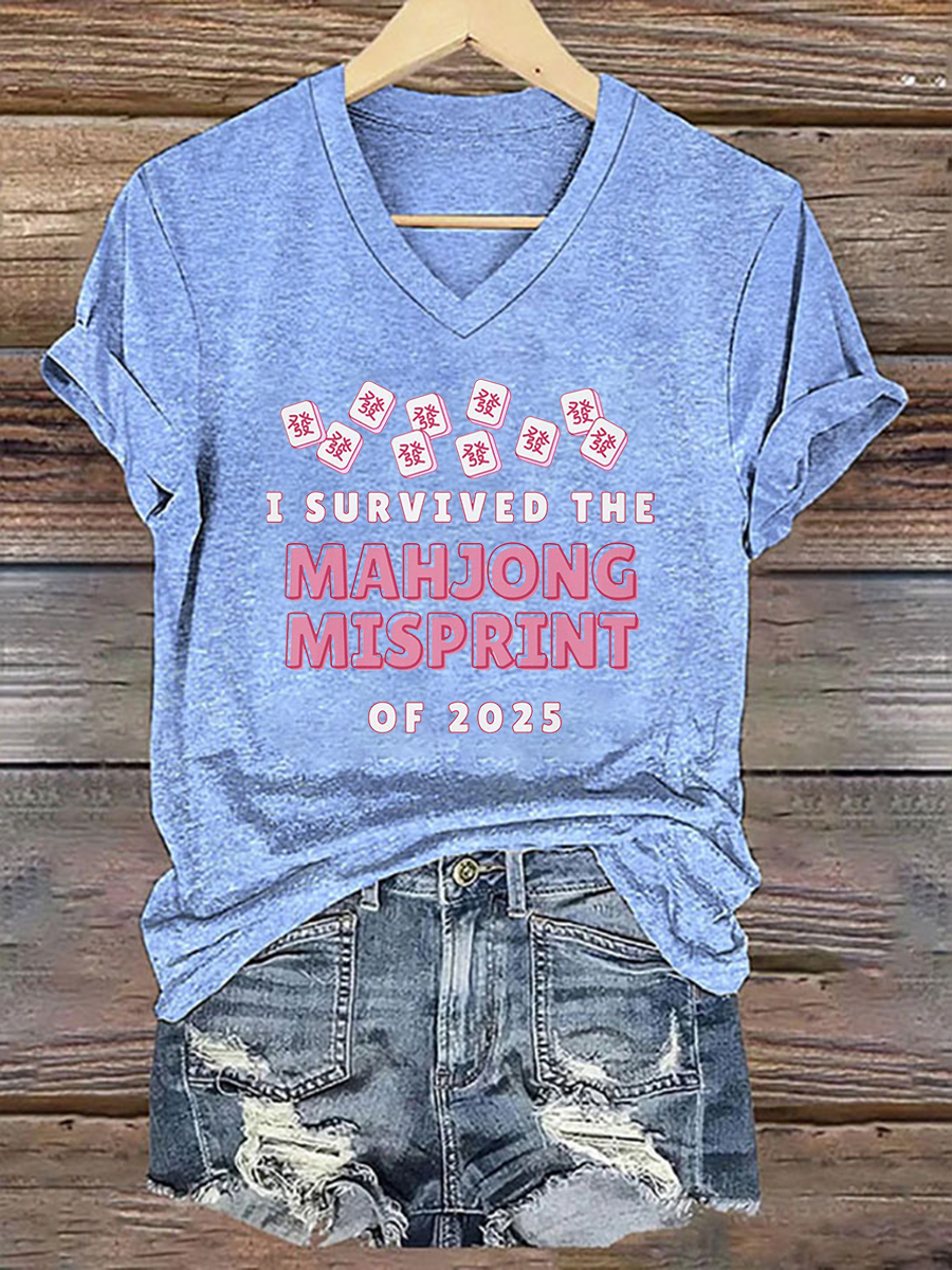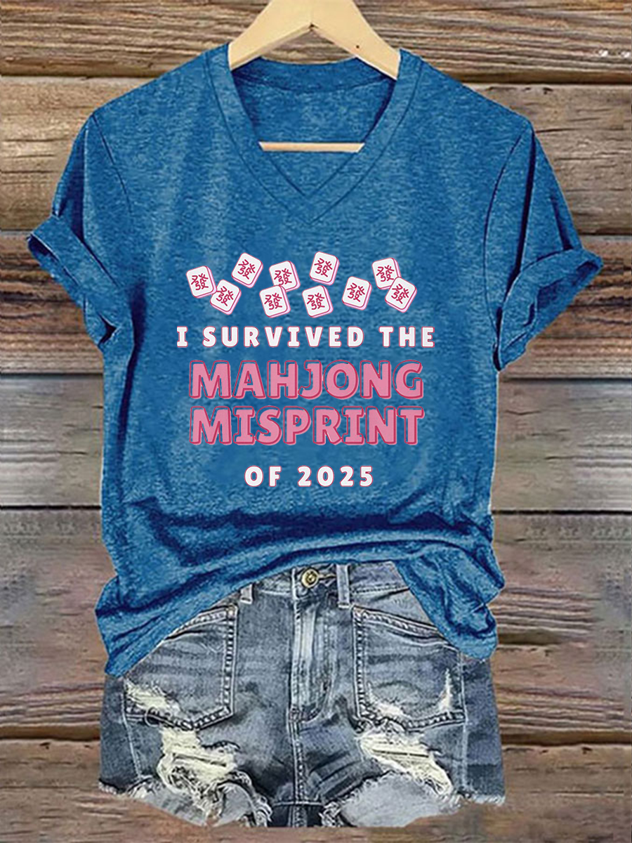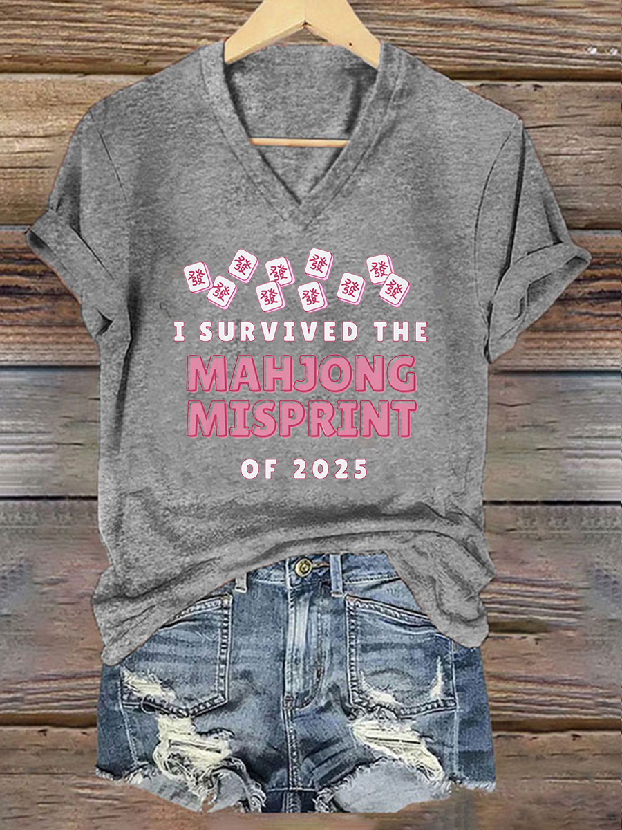 Frauen Ich habe den Mahjong-Fehl abdruck von 2025 Print T-Shirt überlebt