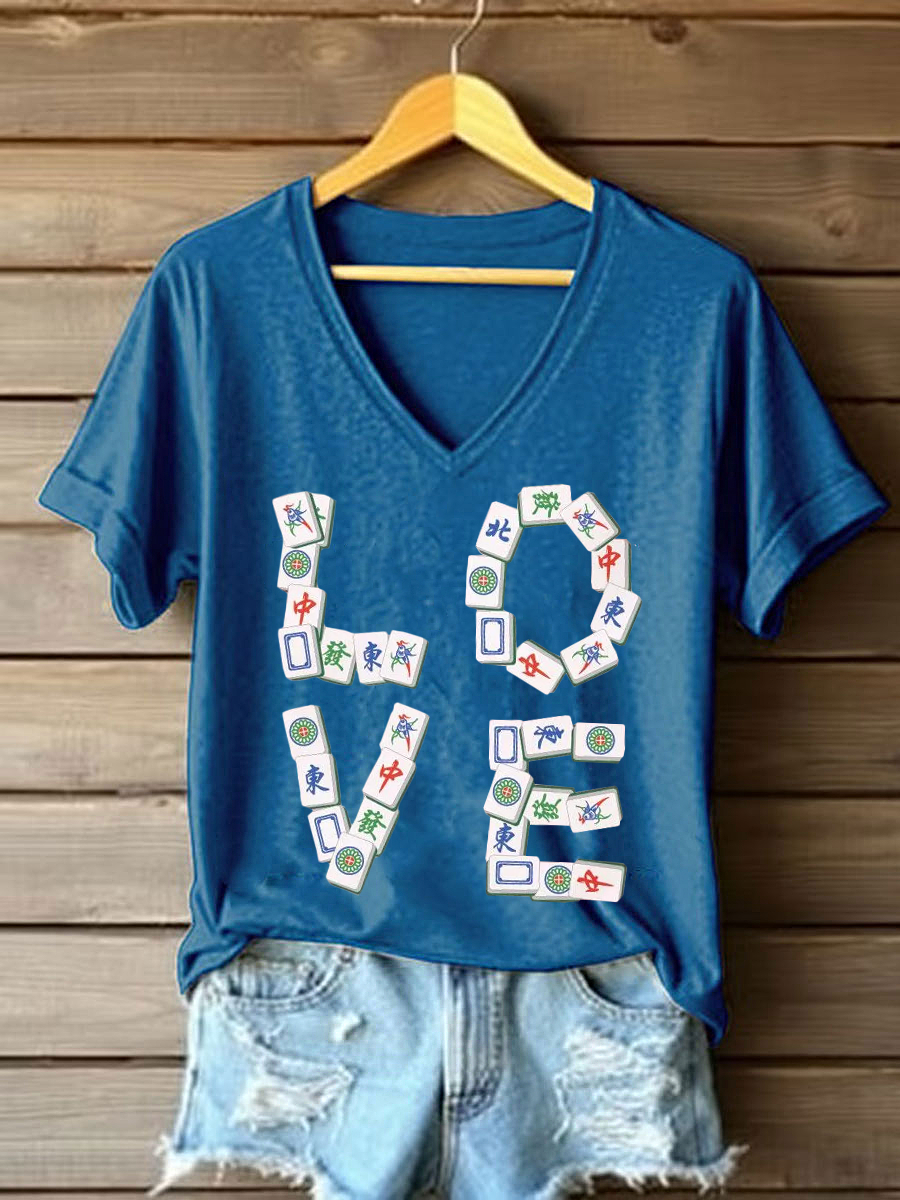 Frauen Liebe Mahjong V-Ausschnitt T-Shirts