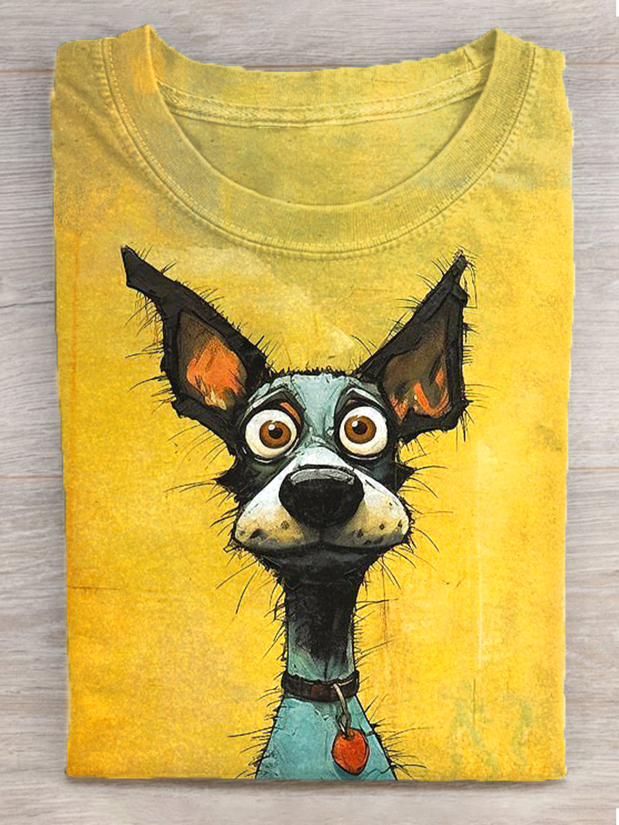 Frauen lustige Hunde-Kunstdruck Kurzarm-T-Shirt