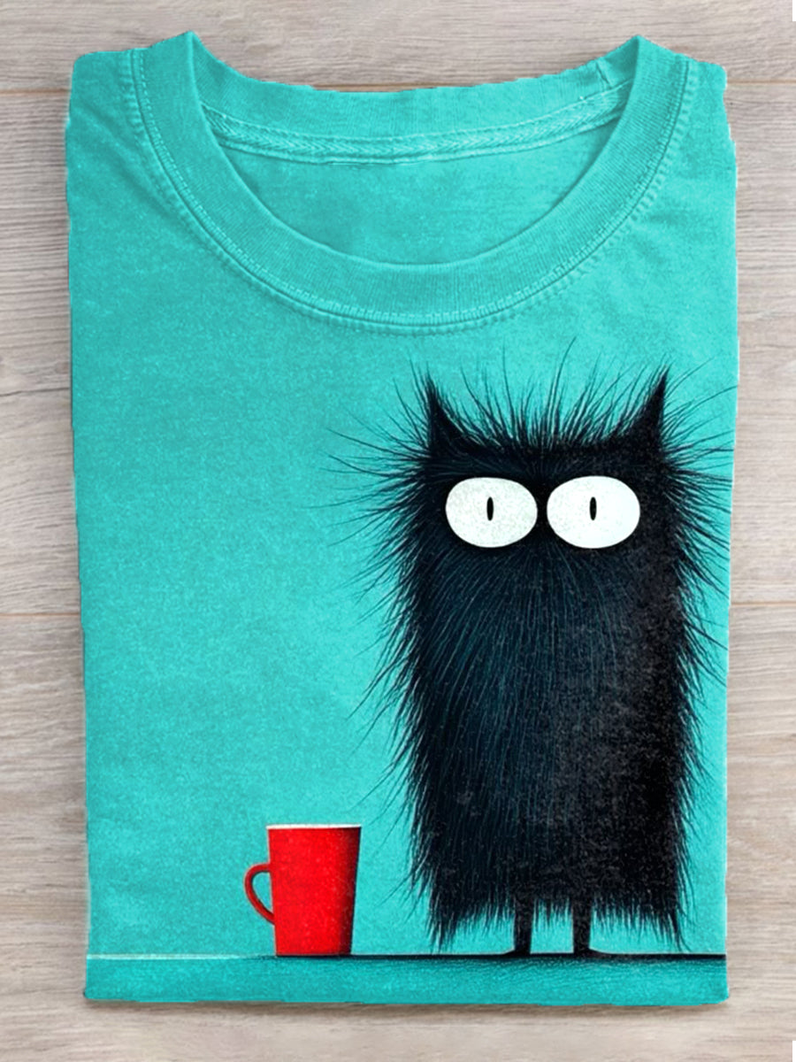 Frauen lustige Katze Kunstdruck Kurzarm T-Shirt