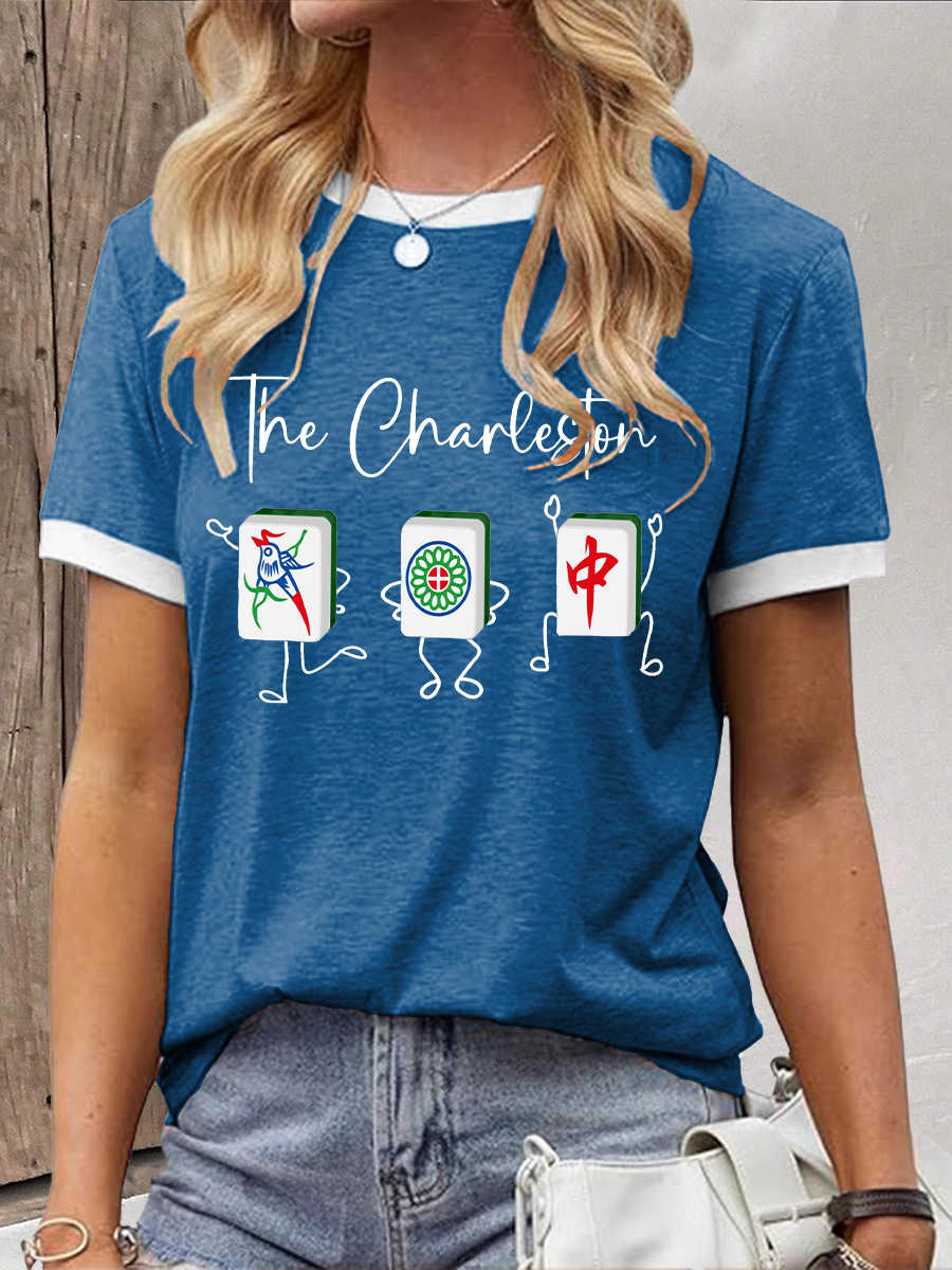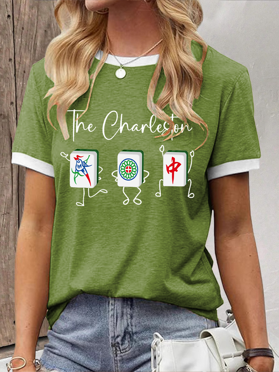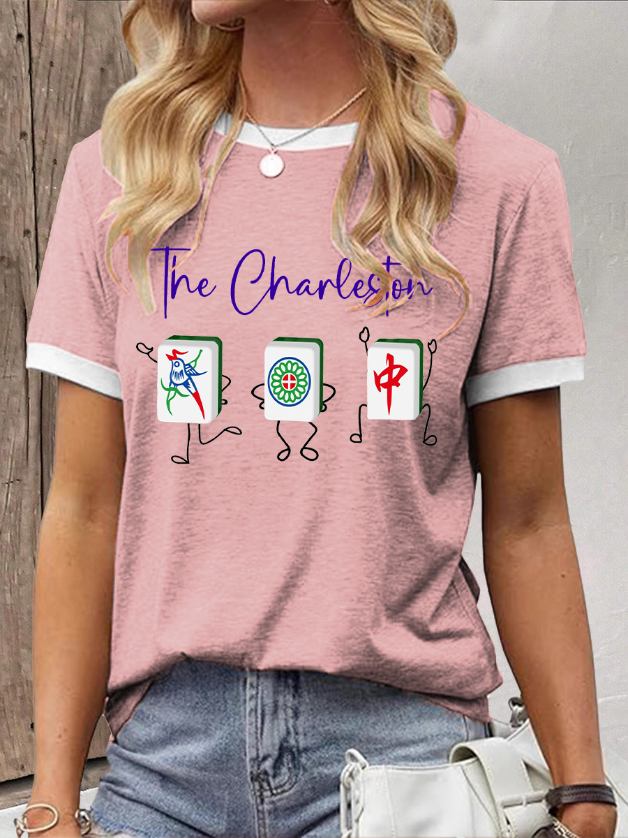 Frauen Lustiges Mahjong bedrucktes lässiges T-Shirt