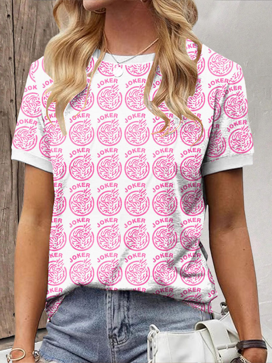 Frauen Lustiges Mahjong bedrucktes lässiges T-Shirt