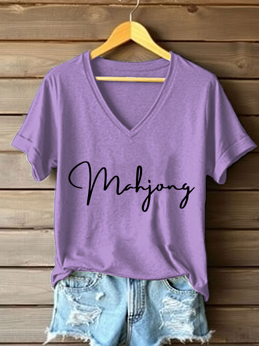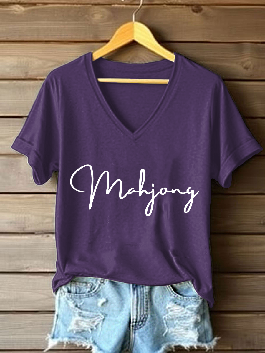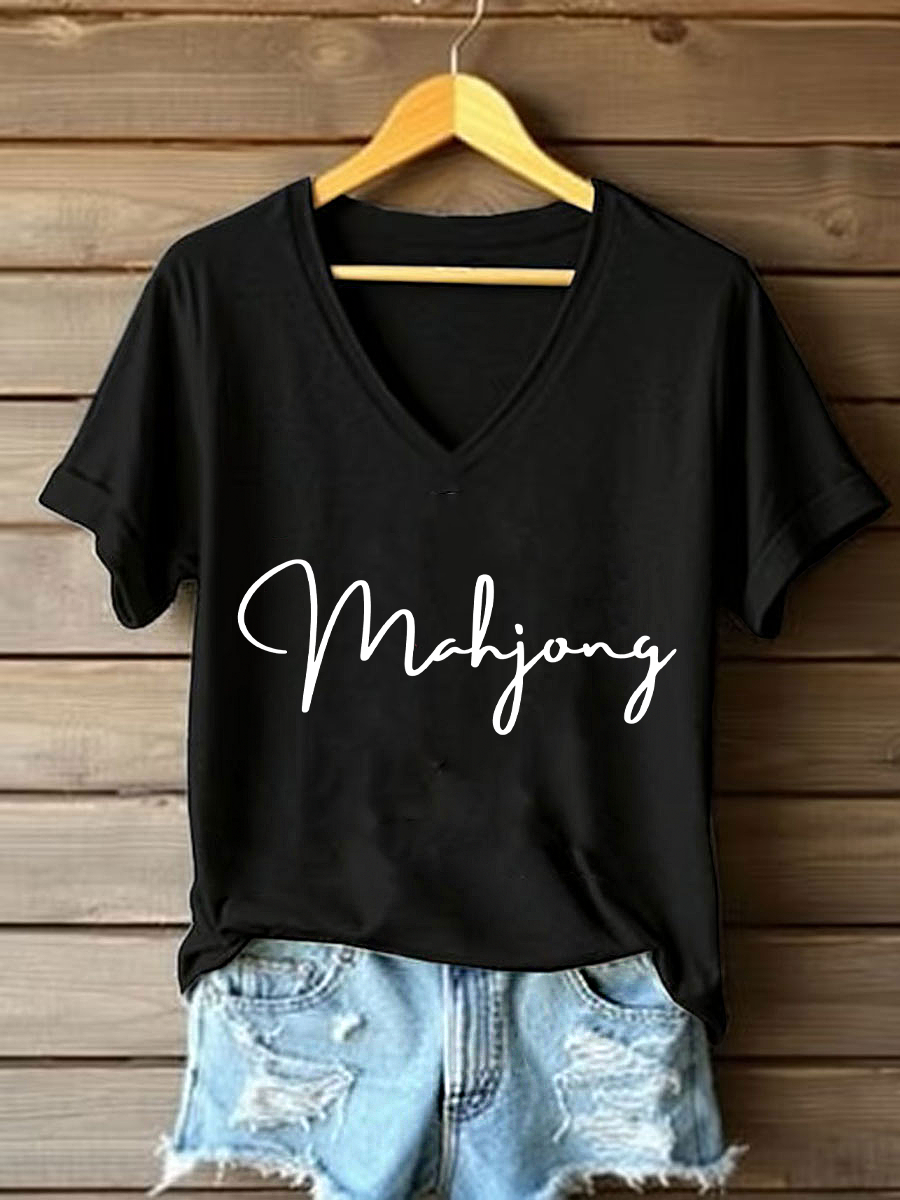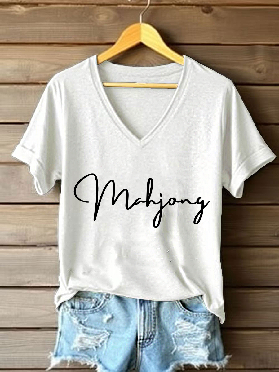 Frauen Mahjong T-Shirt mit V-Ausschnitt