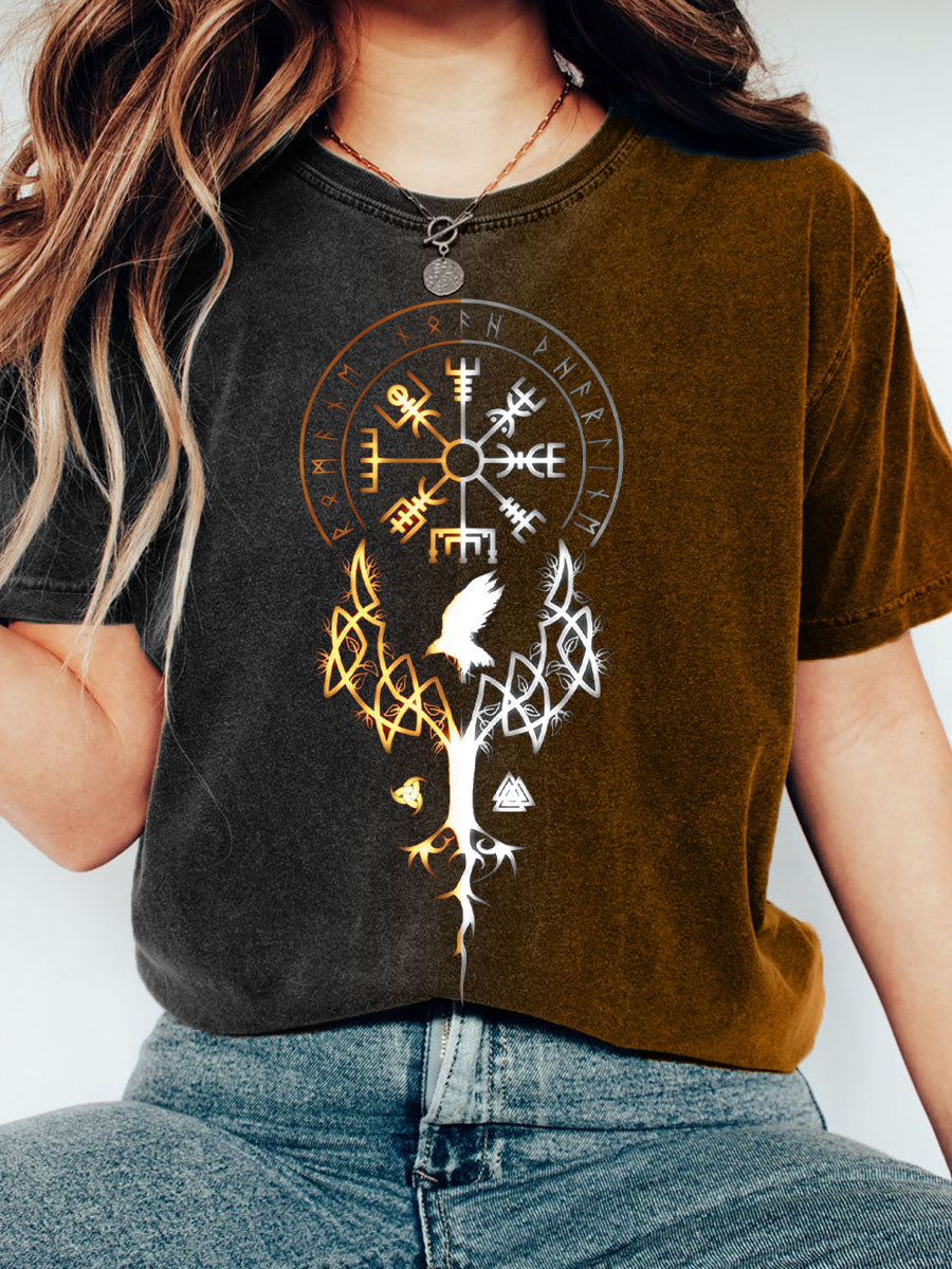 Frauen Viking inspirierte Print Kontrast farbe T-Shirt