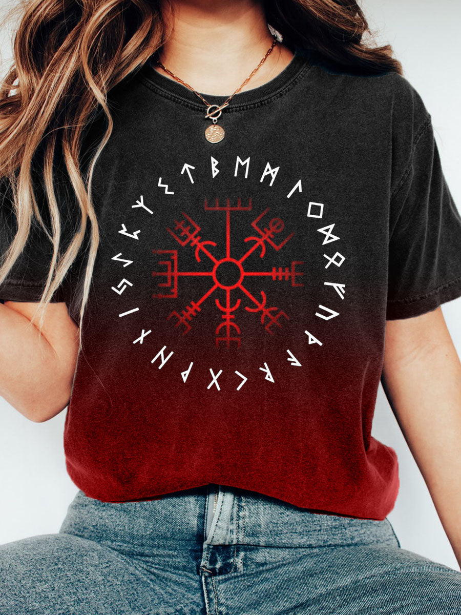 Frauen Viking Symbol Print Kontrast farbe T-Shirt