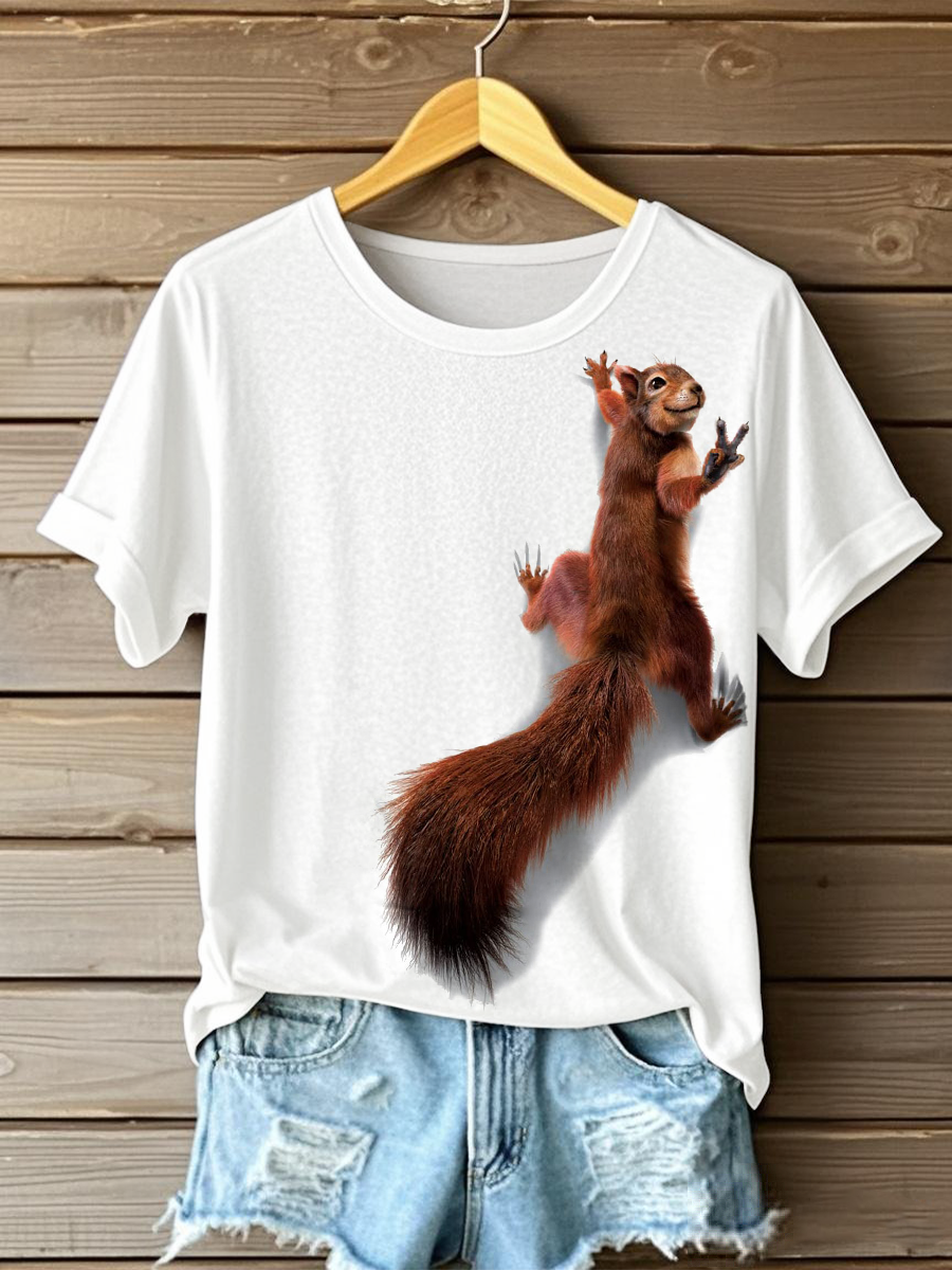 Freizeit-T-Shirts mit Eichhörnchen-Print für Frauen