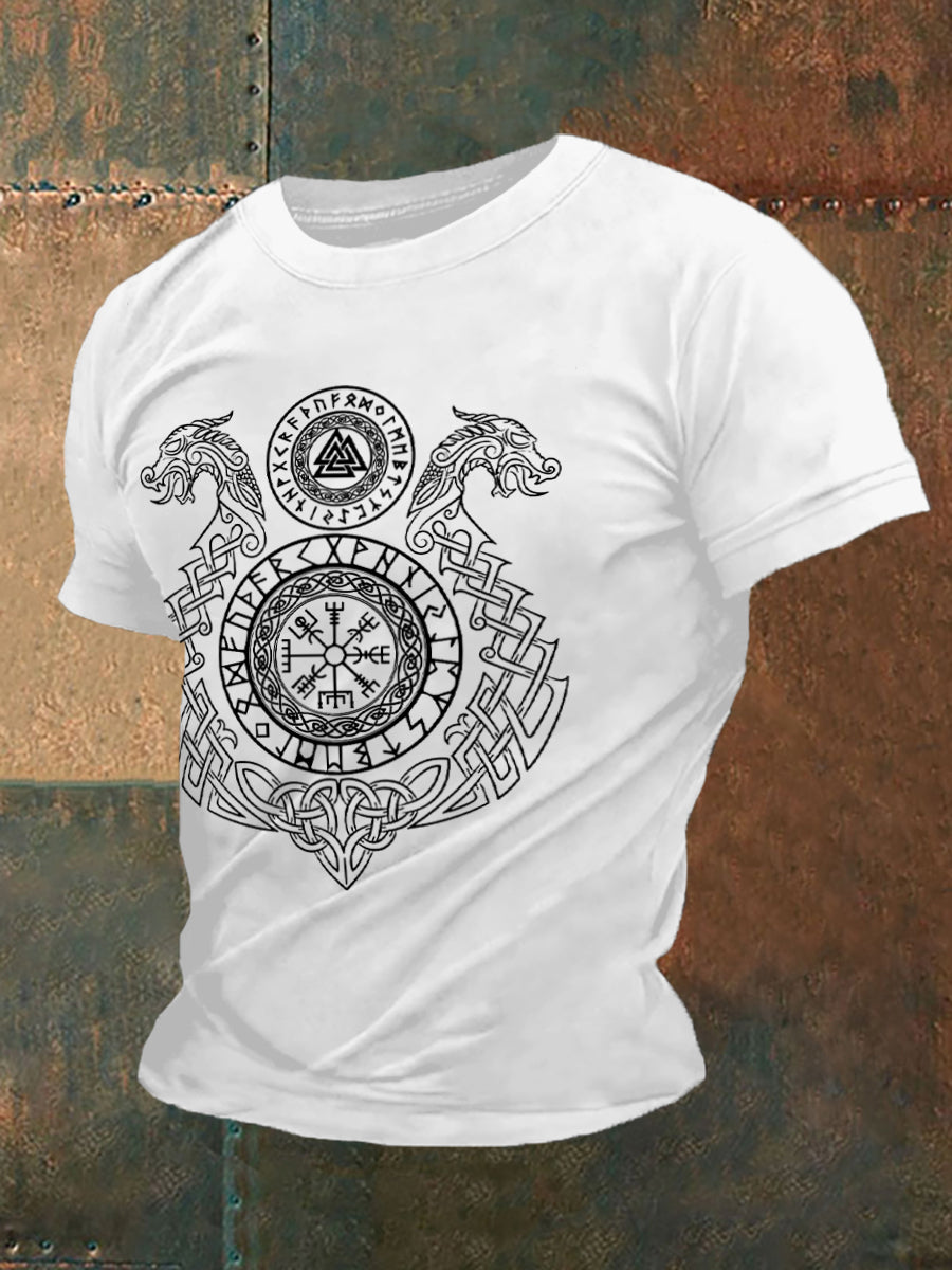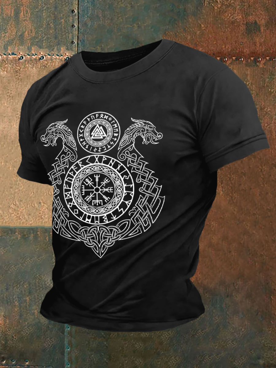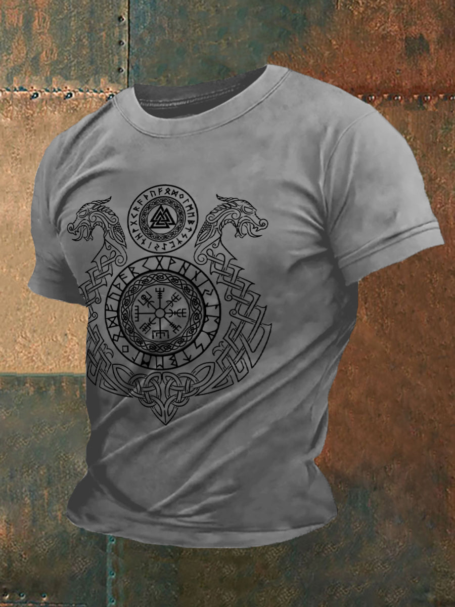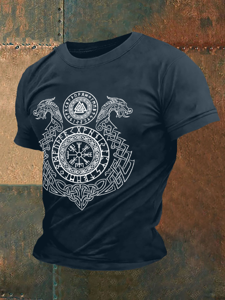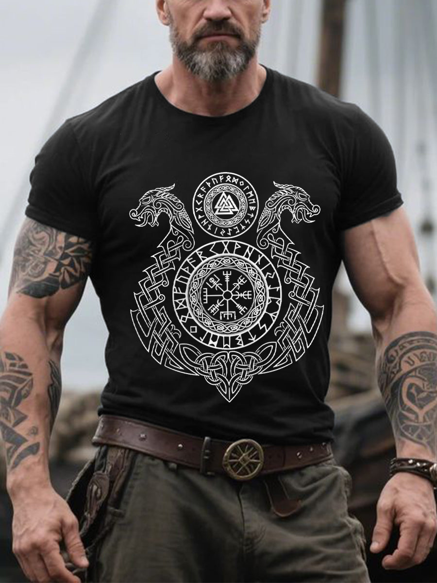 Herren Retro Viking Symbole im nordischen Stil Casual T-Shirt