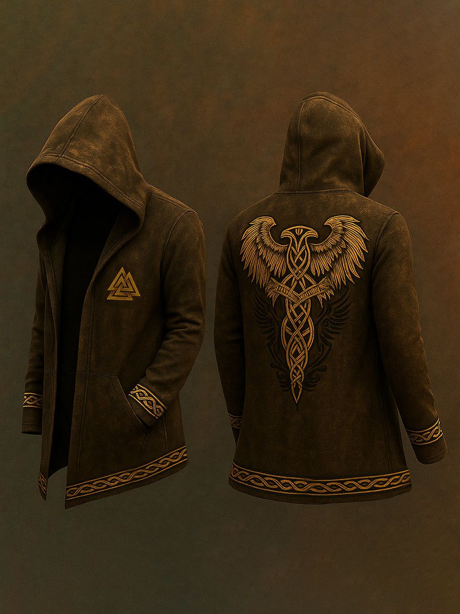 Herren Strickjacke mit Kapuze im Viking-Stil