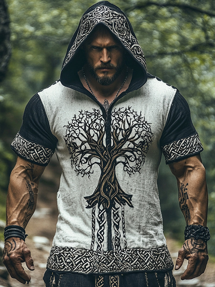 Herren-T-Shirt mit Kapuze im Wikinger-Stil
