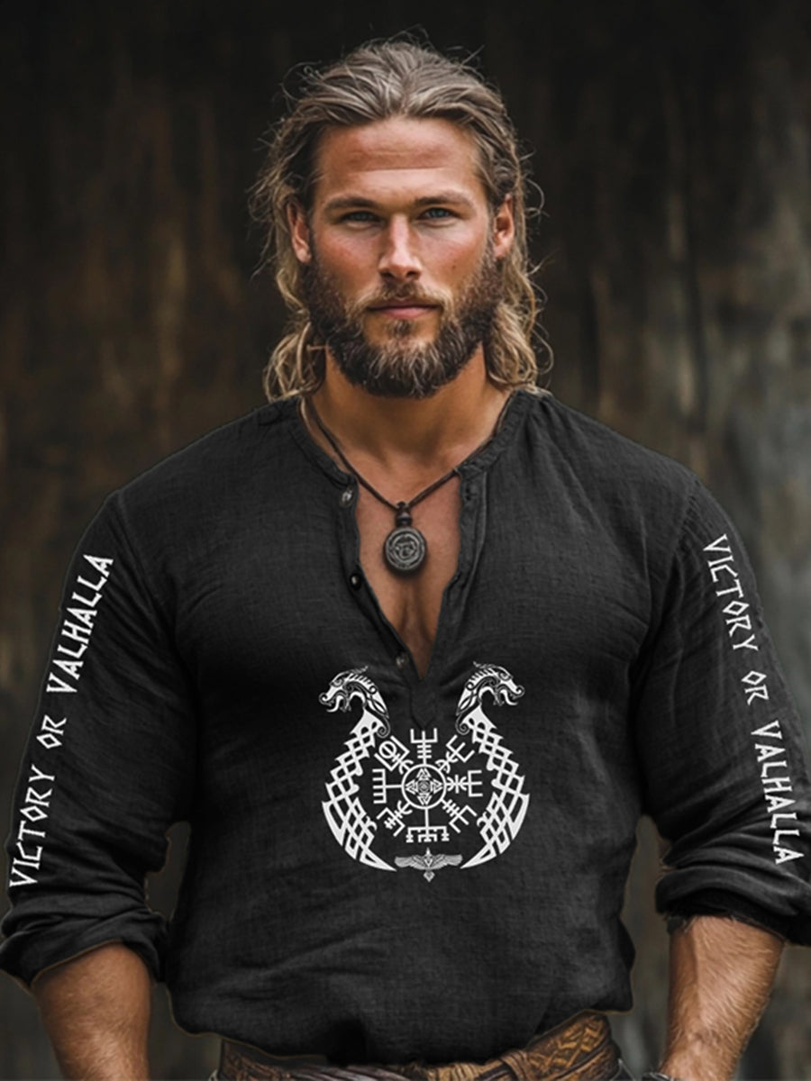 Langarm-T-Shirt aus Baumwolle und Leinen für Herren Viking